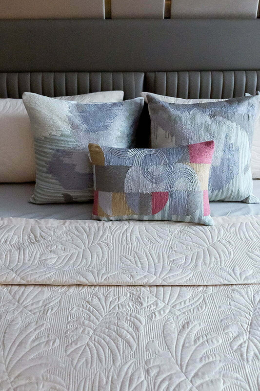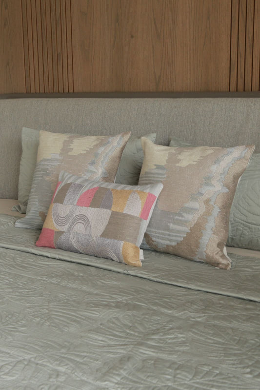 WAFT BEIGE COTTON SATIN BEDSPREAD SET