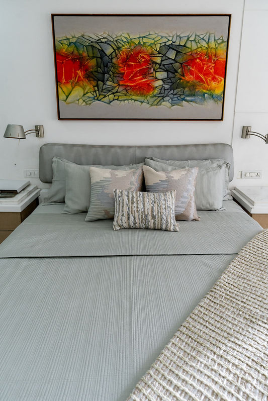 DANCING LOTUS IVORY COTTON BEDSPREAD SET
