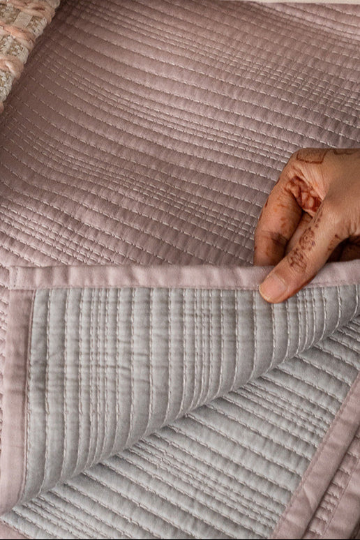 LINEA PINK & SILVER REVRSIBLE COTTON BEDSPREAD SET