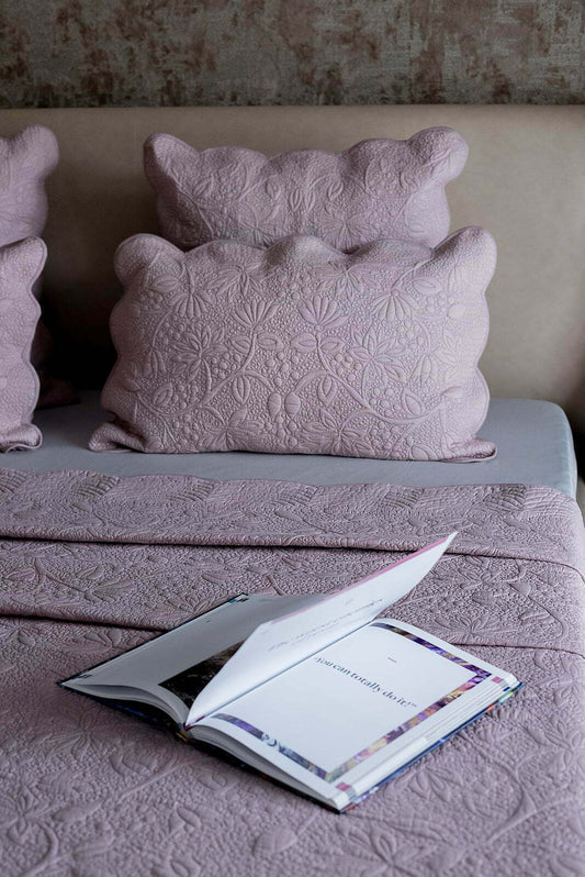 DANCING LOTUS DUSTY PINK COTTON BEDSPREAD SET