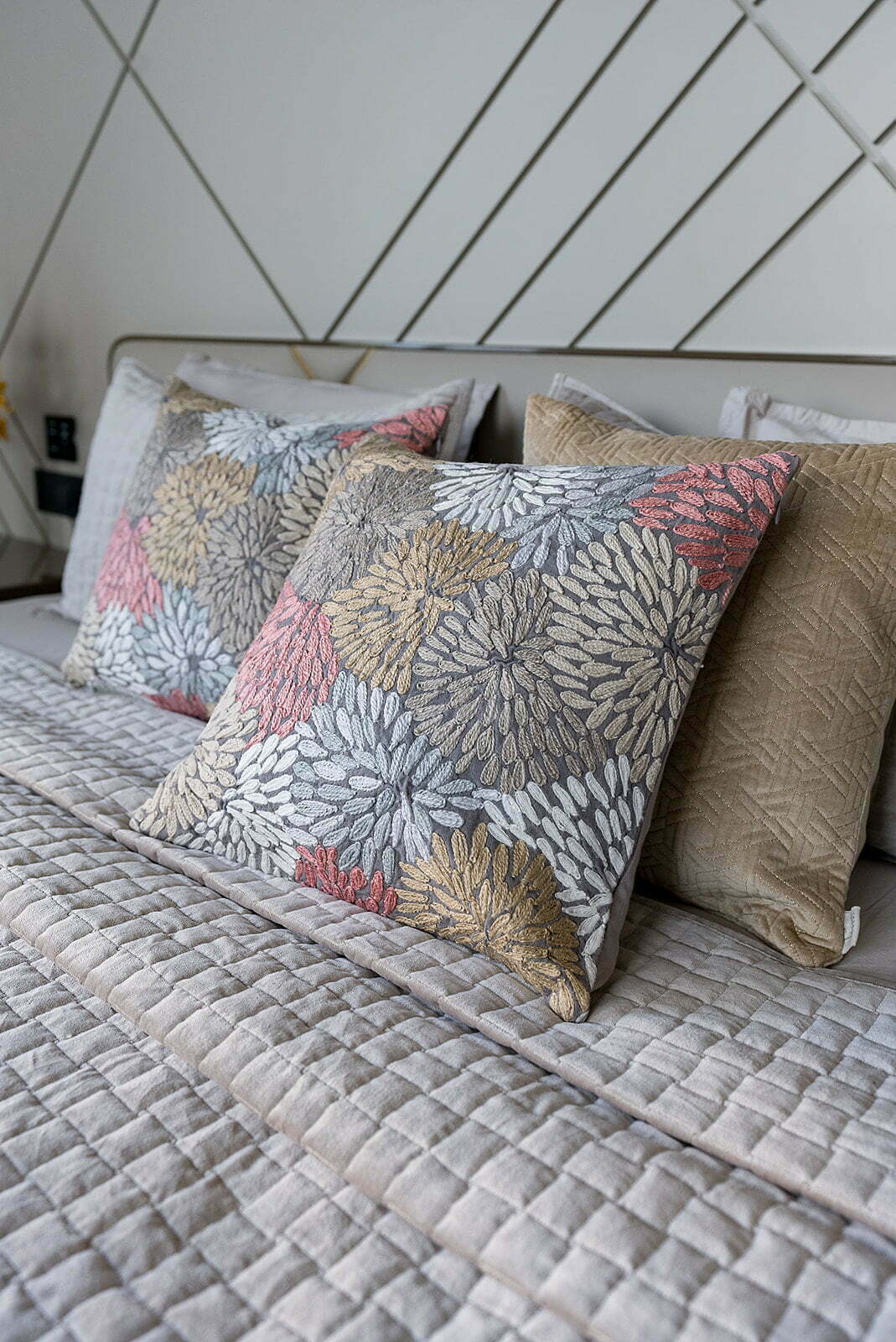 Enhance any corner of your home with our Aura embroidered cushion cover. Featuring elegant hand-embroidered florals in subtle, sophisticated colors, it’s perfect for floral enthusiasts. The intricate yarn embroidery and complementing colors create an attractive atmosphere, making it an ideal choice for enhancing your space.