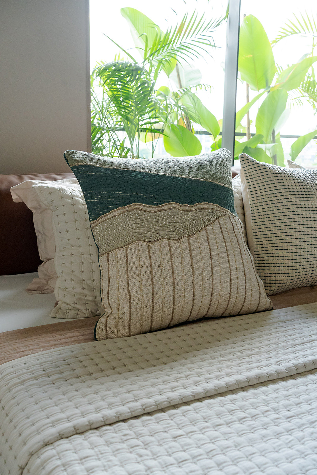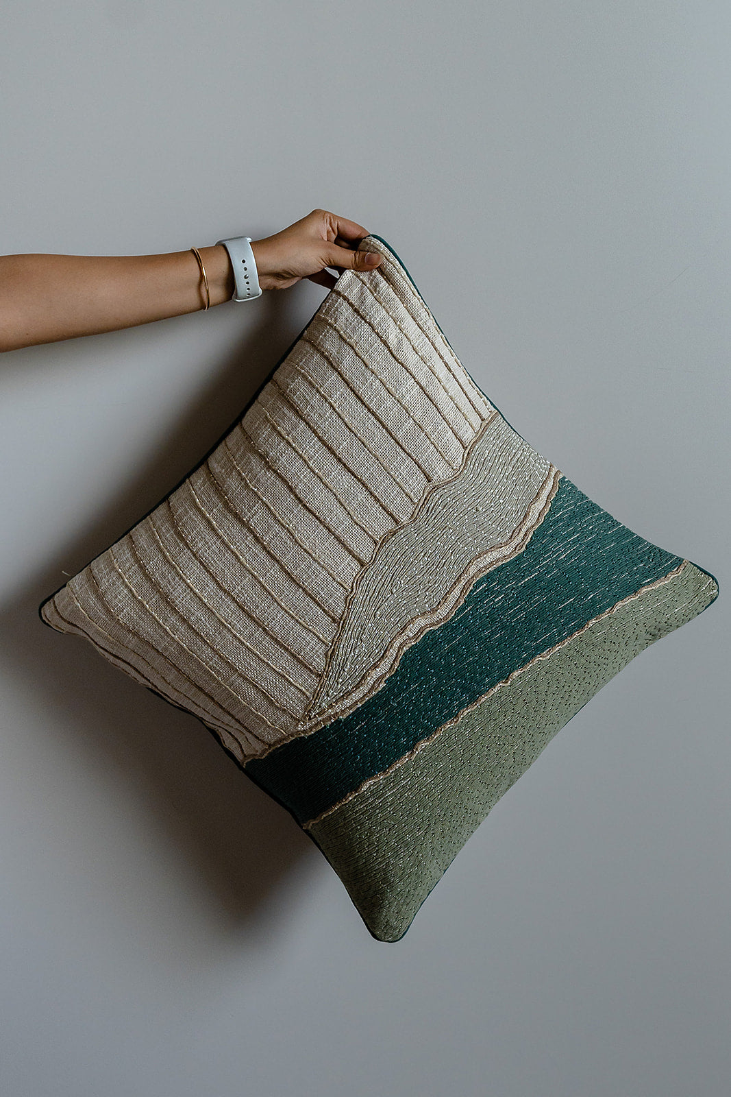 Introducing our Patina Embroidered Cushion Cover, crafted from ultra-luxurious fabric. Featuring a thoughtfully curated colour palette of olive, wheat, and teal embroidery, it evokes the tranquility of the ocean and the Mediterranean. This elegant design not only enhances your space beautifully but also brings a sense of calm and refinement to your décor.