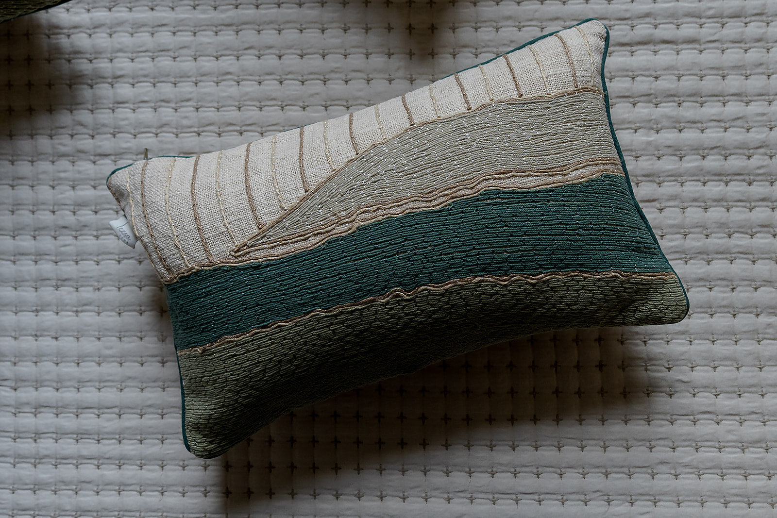 Introducing our Patina Embroidered Cushion Cover, crafted from ultra-luxurious fabric. Featuring a thoughtfully curated colour palette of olive, wheat, and teal embroidery, it evokes the tranquility of the ocean and the Mediterranean. This elegant design not only enhances your space beautifully but also brings a sense of calm and refinement to your décor.